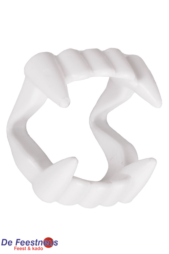 De tandjes op de foto zijn nep-vampiertanden, vaak gebruikt als verkleedaccessoire bij Halloween of themafeesten. ????