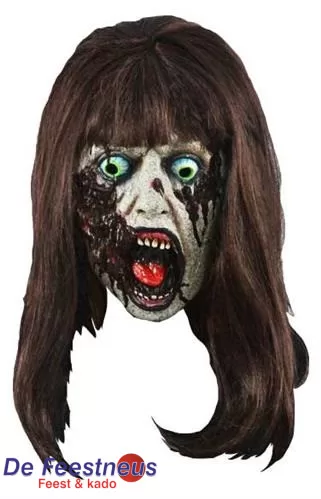Gezichtsmasker Zombie vrouw met lang bruin haar