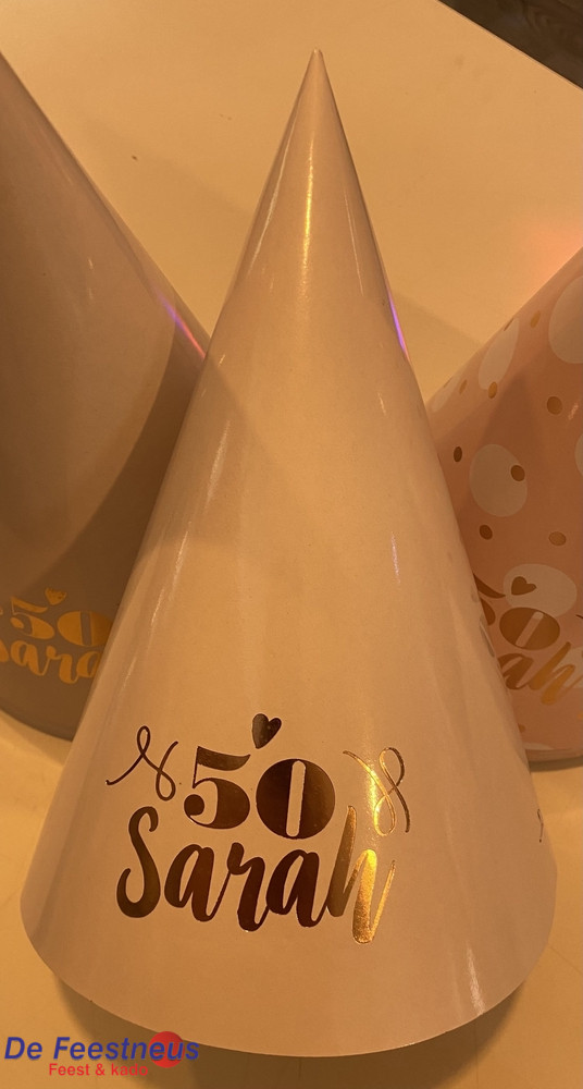 Feesthoedje Sarah 50 jaar – roze/wit