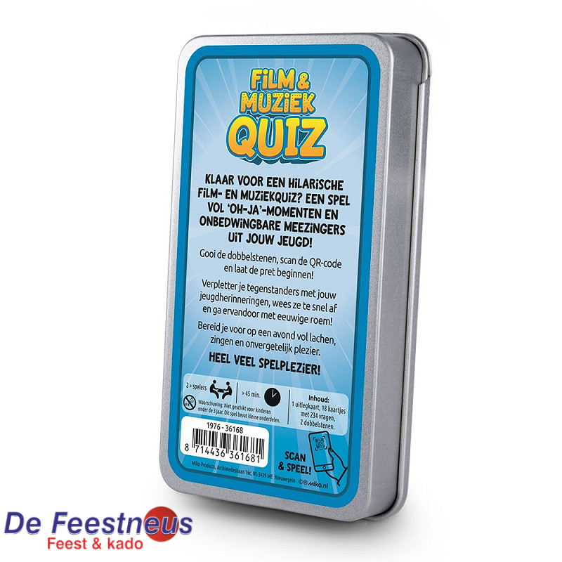 Elk spel bevat 19 kaartjes en 2 dobbelstenen in een blikje met een luxe schuifbare deksel. Met in totaal 234 vragen per spel is het een uitdagende en vermakelijke ervaring die zeker niet na 1 keer spelen verveelt.