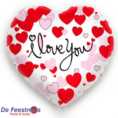 Een lieve hartvormige ballon vol rode en roze hartjes en de handgeschreven tekst ‘I love you’. Perfect om iemand te verrassen met een warm en oprecht gebaar.