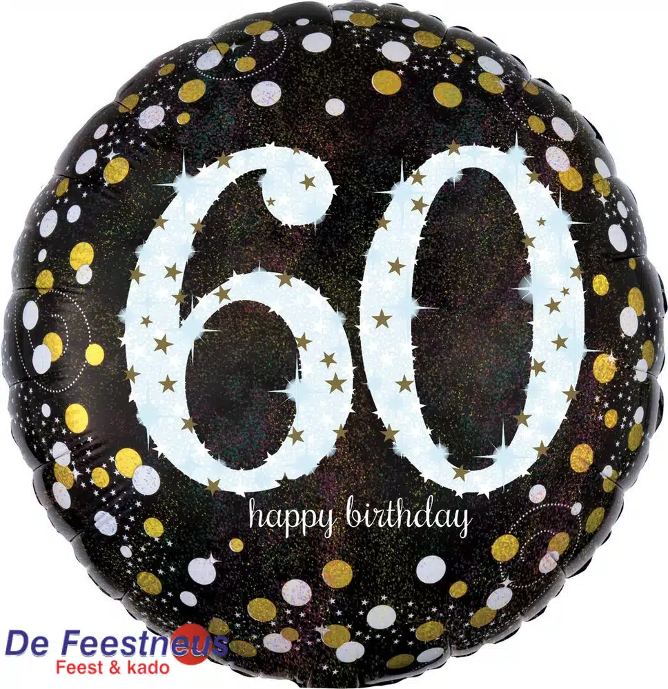 Folieballon ’60’ sparkling birthday (Ø45cm)