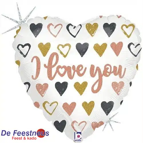Folieballon ’I love you’ holo glitter hart (Ø45cm)