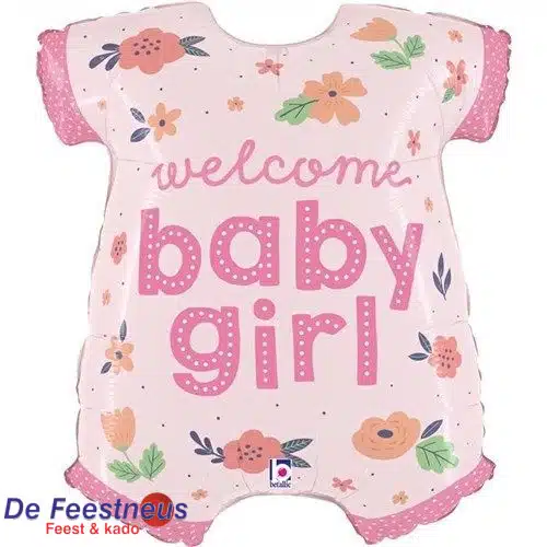 Folieballon Welcome baby girl rompert baby roze – 66 cm.