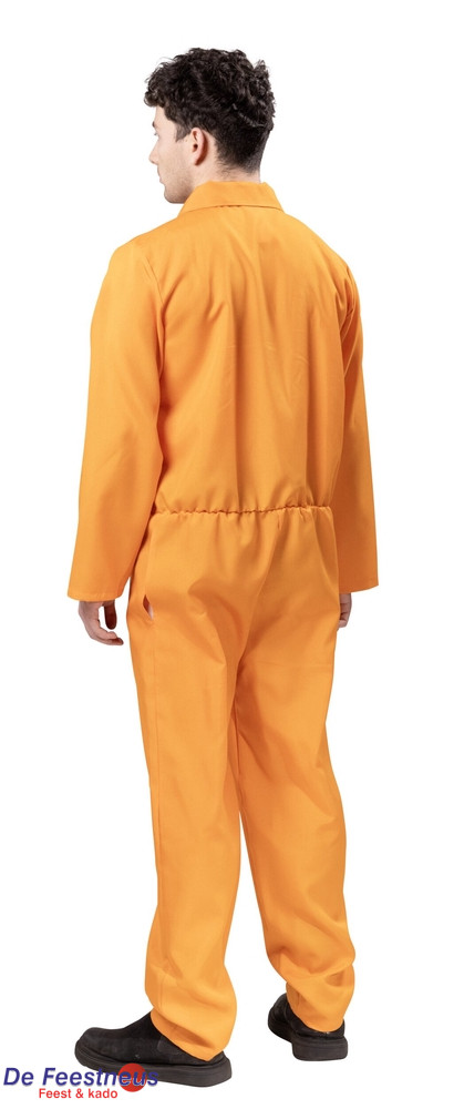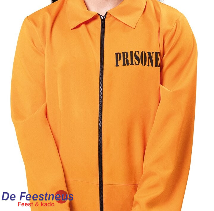 Gevangenis jumpsuit met lange mouwen in typisch oranje, bekend van verschillende tv-series en muziekvideo’s. De jumpsuit heeft een zwarte rits en het woord โGEVANGENEโ gedrukt op de linkerborst. Er zijn toegangsgaten aan de linkerkant en rechts, zodat u de zakken van de broek eronder kunt bereiken. De jumpsuit heeft een elastische tailleband aan de achterkant voor een betere pasvorm, anders is hij gewoon oranje.