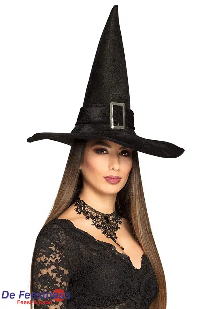Heksenhoed zwart met gesp