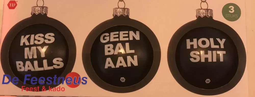 Kerstballen ”Kiss my balls/Geen bal aan/Holy Shit” – per 3 stuks
