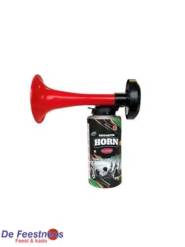 Verpakking bevat een bus en een herbruikbare hoorn. Het gas is niet ontvlambaar