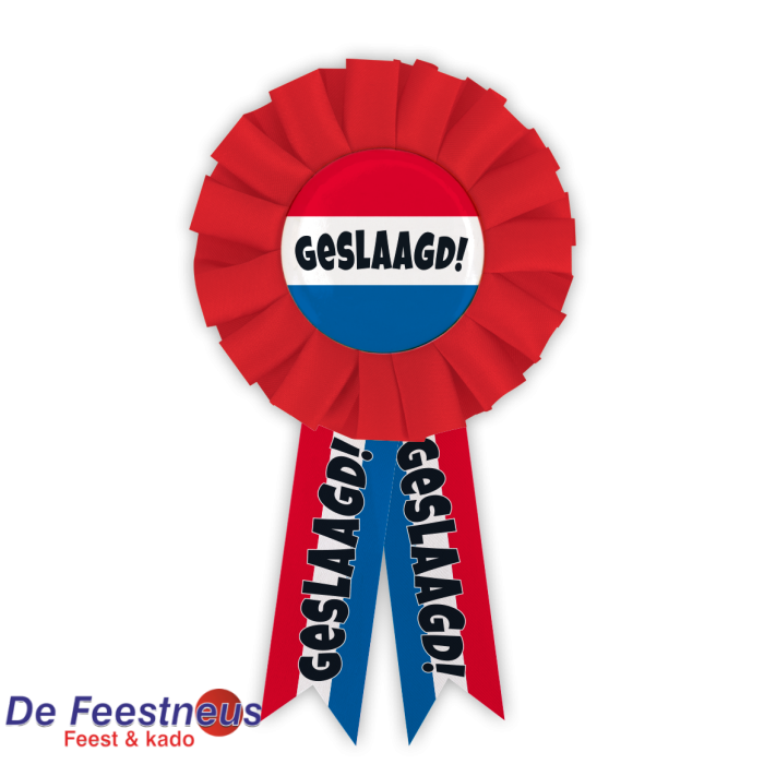 De rozet is gemaakt van textiel en vormt een leuke accessoire tijdens een diploma-uitreiking of examenfeest. Dankzij de rood-wit-blauwe kleuren past deze geslaagd rozet perfect bij andere feestdecoratie in het geslaagd thema.