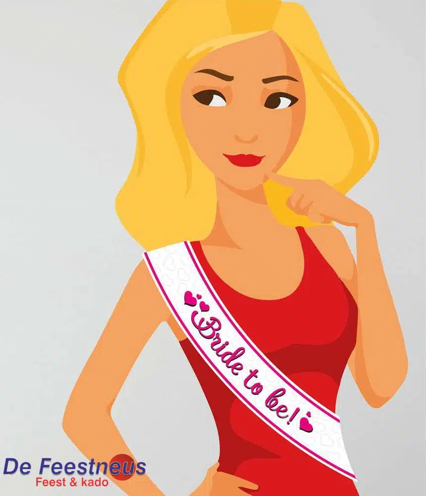 Laat de bruid stralen met deze stijlvolle Bride To Be party sjerp. Perfect voor een vrijgezellenfeest, bachelorette party of bridal shower en dé eyecatcher voor de aanstaande bruid.