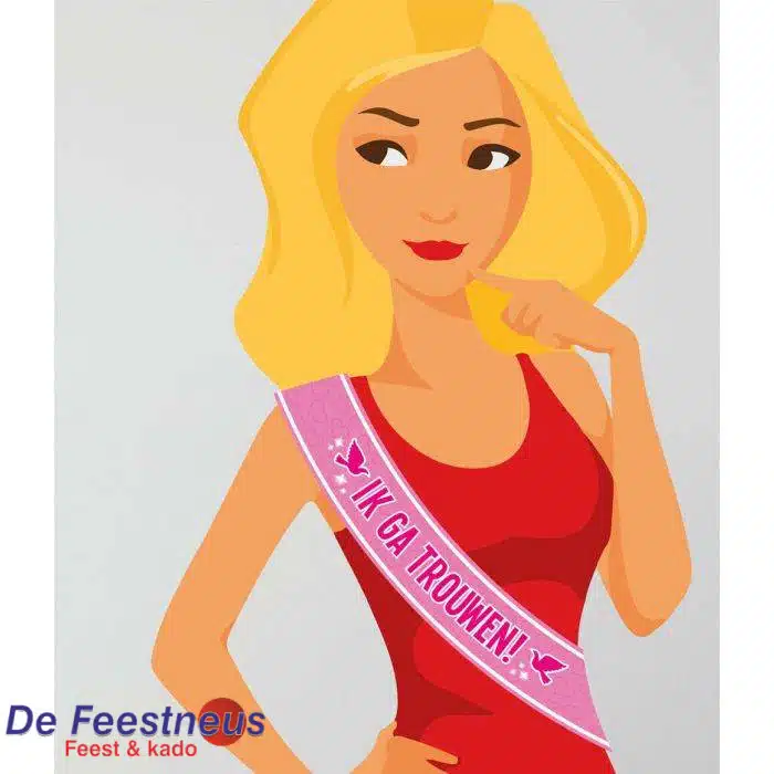 Party sjerp “Ik ga trouwen” is de perfecte vrijgezellenfeest sjerp voor de aanstaande bruid. Ideaal als bride to be accessoire voor een bachelorette party, vrijgezellenavond of trouwfeest. Met deze feest sjerp staat de bruid in het middelpunt van de aandacht.
