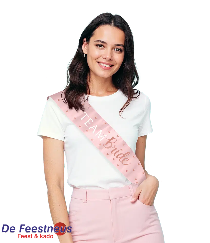 De Team Bride sjerp is een echte eyecatcher en ideaal voor foto’s en feestelijke momenten. Lichtgewicht en comfortabel te dragen, zodat je de hele dag en avond in stijl kunt vieren.