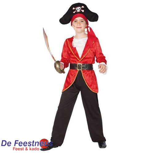 Kostuum bestaat uit: jasje, broek, riem en piratenhoed.