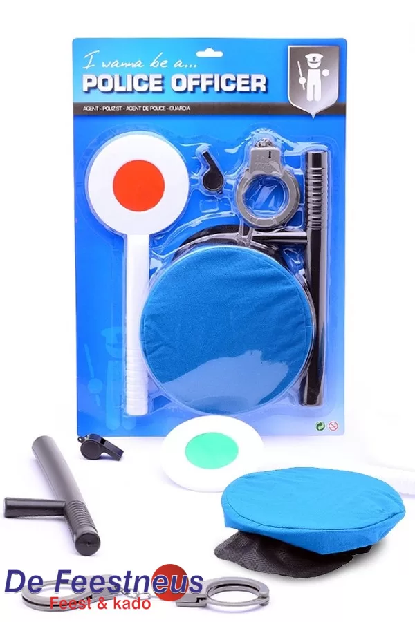 Gave politieset met een politiepet, handboeien, wapenstok, fluit en stopbord. Met deze Politie verkleedkleding heb je alles in huis om een stoere politieagent te spelen!