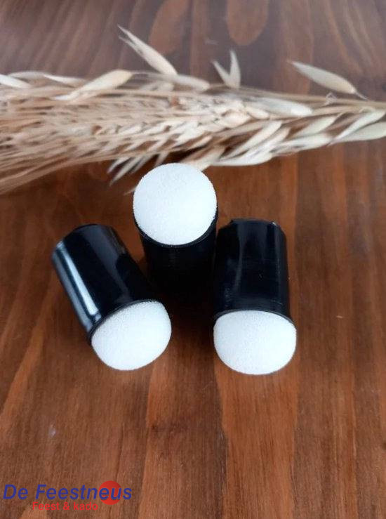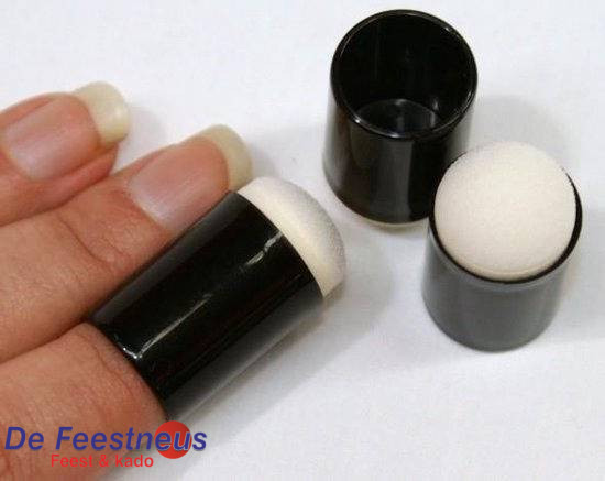 Een vingersponsje is een ideaal hulpmiddel bij het gebruik van schminksjablonen. Zet eenvoudig het vingersponsje op je vinger. Het vingersponsje laat je droog, je maakt enkel de schmink wat nat met een sprayflesje. je kunt nu de vingersponsje laden met Schmink, en gebruiken in combinatie met een schmink sjabloontje. Op deze manier kun je heel gericht en verfijnt je sjabloontje aanbrengen. Zonder geknoei over de randen.