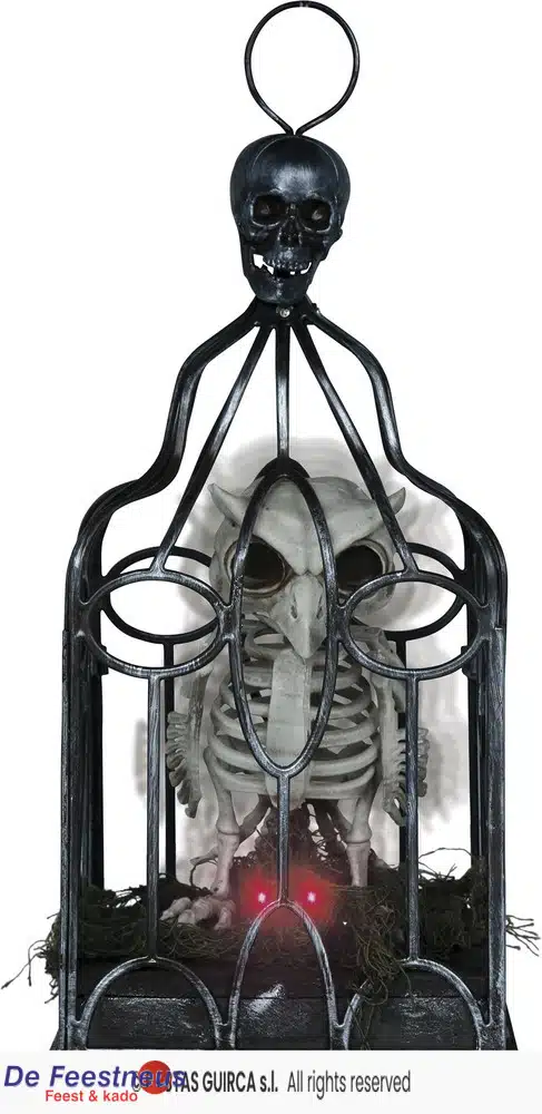 Skelet uil in kooi met licht, geluid en bewging 33cm