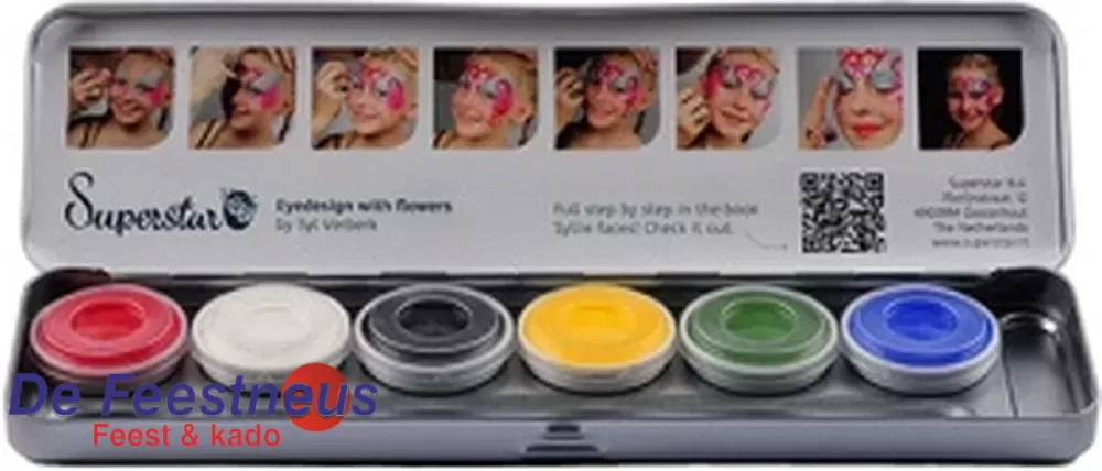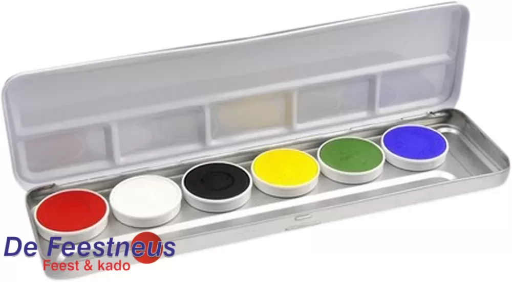 SuperStar Schminkpalette, 6 pastelkleuren bevat 6 van de 12 basiskleuren. Deze water schmink kleuren dekken zeer mooi op de huid.