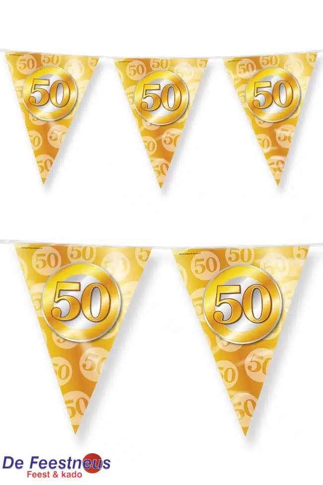 De vlaggetjes slinger 50 jaar getrouwd is een graag geziene gast op een feestje.